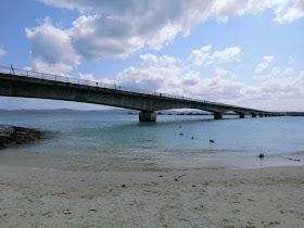 吃過飯開始往住宿飯店步行回去,在Lowson先買好隔天的早餐之後就帶她們回飯店休息了:D D2 3/7OTS租車 0900 OTS派計程車來我們旅社門口接我們到它的營業所。泊店提供飯店接駁(只有這家OTS才有!而且來回飯店都有!)有飯店接駁可以省去拖著行李走來走去的麻煩,真的超級適合長輩行程。 辦好租車手續大概1000出發古宇利島沖繩的導航滿方便的,只要輸入map code就能到達景點(強烈建議出國前先查好所有景點mpacode)直接導到午餐地點yoshida 海之家(mapcode 485 692 084)吃阿古豬、海葡萄、生魚丼,小貴、滿值得的,我媽好喜歡阿古豬火鍋本來想帶他們繞古宇利島,四點後再去美麗海水族館(門票還比較便宜)但後來怕開車這樣繞帶太晚會太累,最後只在古宇利大橋附近走走採水~專程開車到古宇利島只在橋邊走走和吃午餐好像有點不划算(開很遠)所以如果要安排進行程可以考慮一下時間成本。不過我媽說這趟行程她最愛的就是古宇利島,而且還會想再訪。老實說我第一次去沖繩除了藍洞潛水也最愛古宇利島